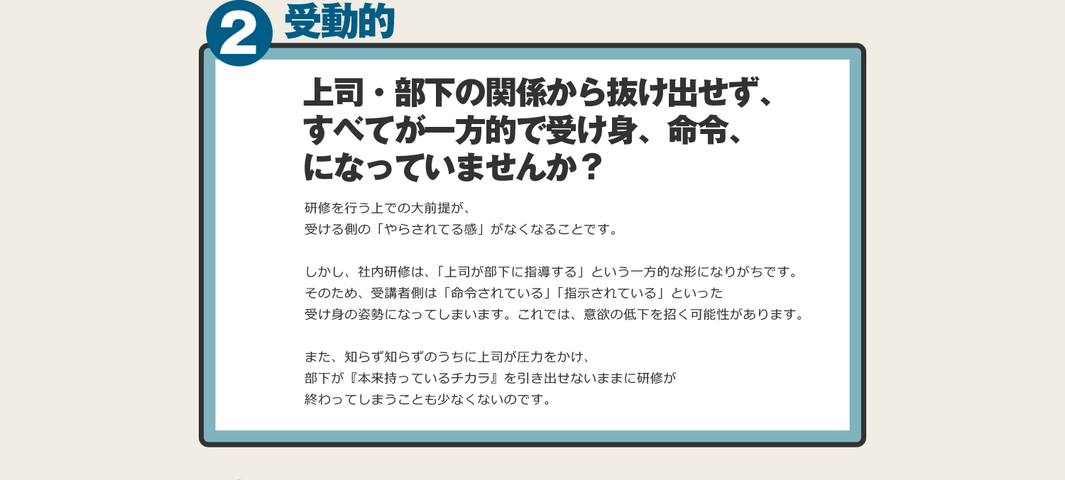 ワークには、受講者が自ら気付いていく仕掛けがたくさんあります。